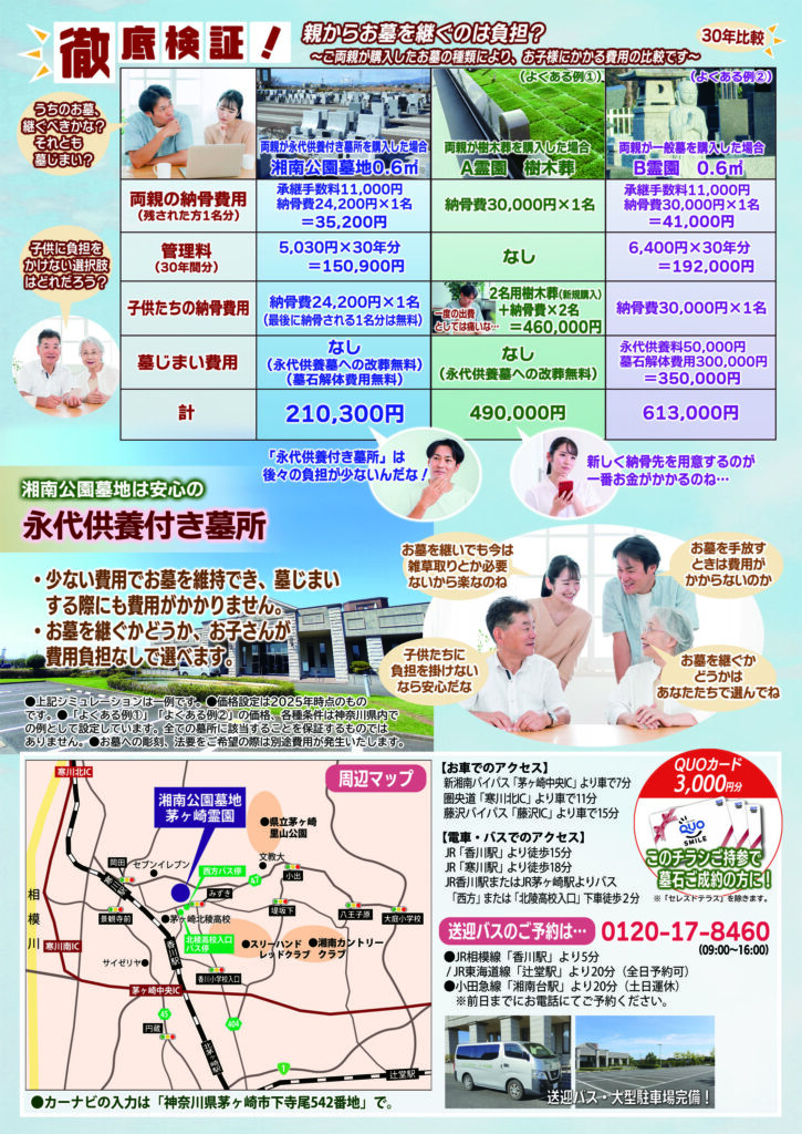 現在、お墓は一昔前の状況とは異なり、樹木葬や散骨が「安価」であり、一般墓は「管理が大変で高価」という状況は崩れています。一般墓も現在では永代供養付きが通常化しており、お客様の状況によりベストな選択肢が異なります。