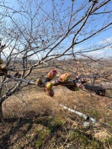 枝先をよく見ると、後に続けとばかりに、他の蕾たちもピンク色の顔を覗かせ、今にもポンッと咲きだしそう★